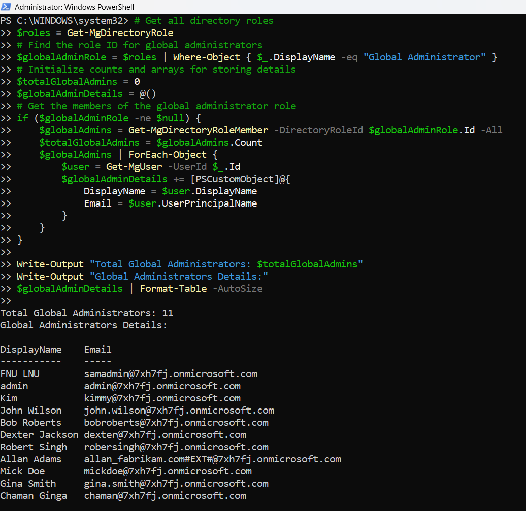 Write-Output "Total Global Administrators: $totalGlobalAdmins"