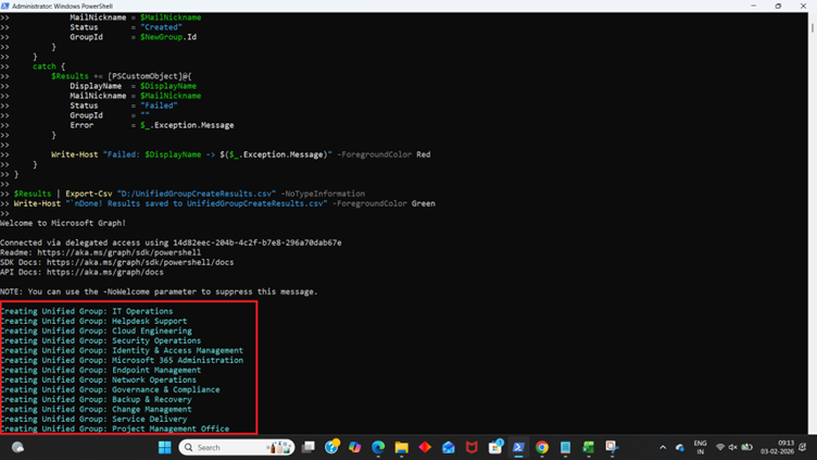 Write-Host "`nDone! Results saved to UnifiedGroupCreateResults.csv" -ForegroundColor Green