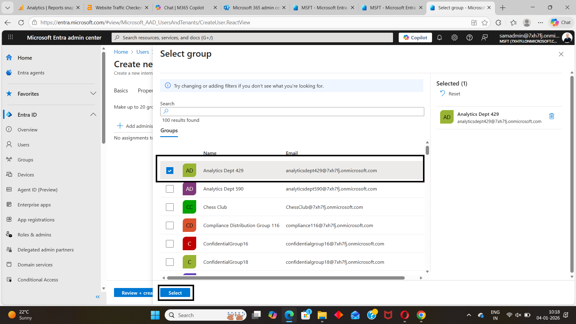 Once confirmed, the user is created in Entra ID (formerly Azure AD) and becomes available across Microsoft 365 services immediately.