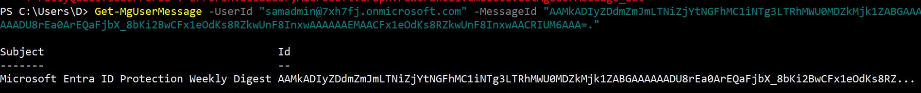 The Get-MgUserMessage cmdlet in Microsoft Graph PowerShell allows administrators and users to retrieve email messages from a specific mailbox in Microsoft 365. This cmdlet enables users to fetch individual or multiple messages, apply filters, and extract specific email properties for reporting or automation purposes.
