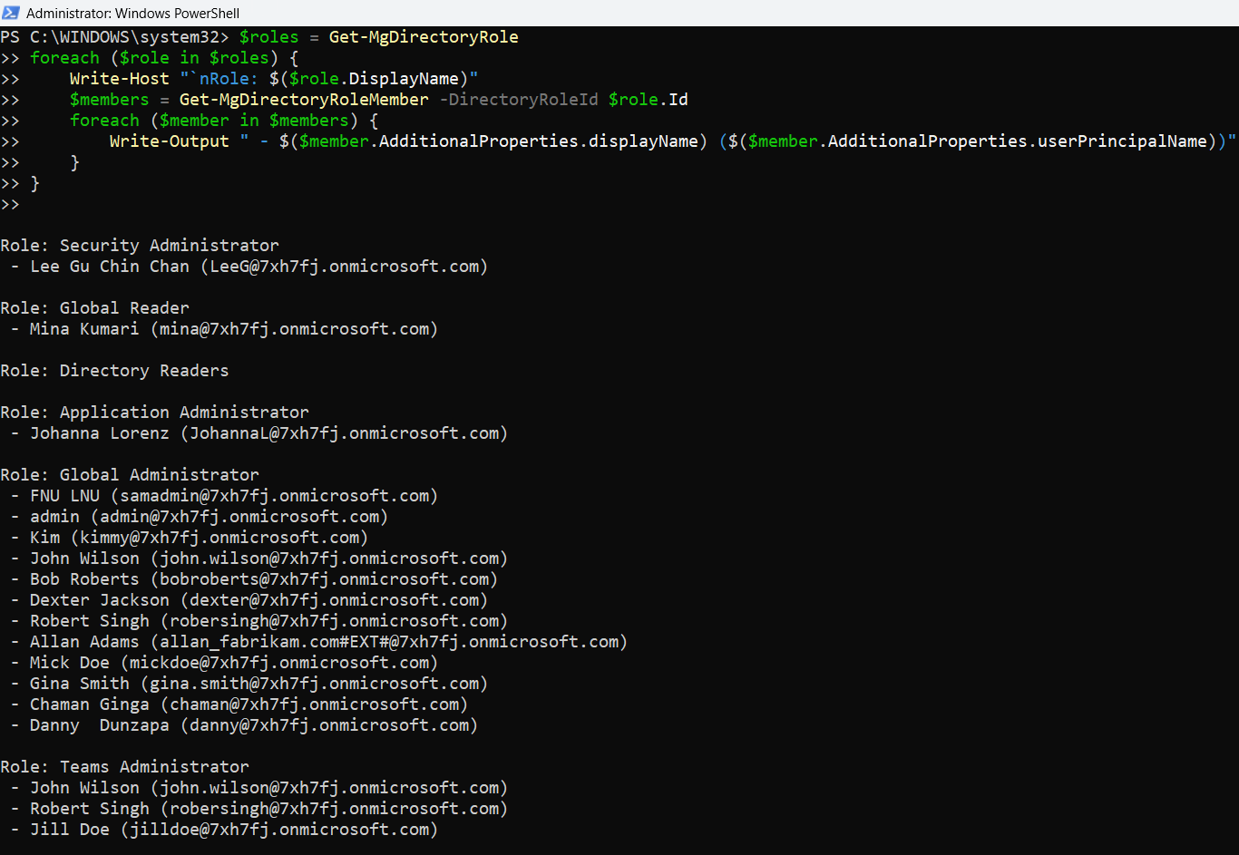 $members = Get-MgDirectoryRoleMember -DirectoryRoleId $role.Id