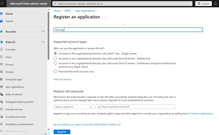 To register your tenant with the M365Corner Reporting Tool, you need to create an Entra ID app.