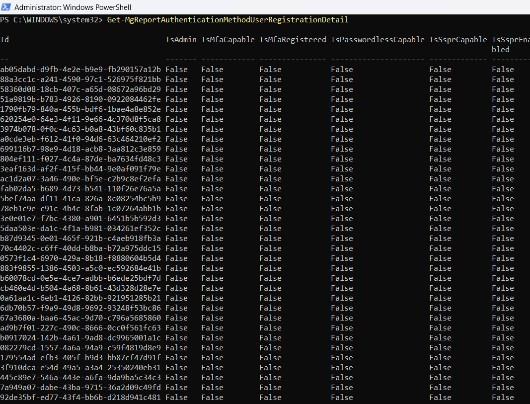 Get-MgReportAuthenticationMethodUserRegistrationDetail -All