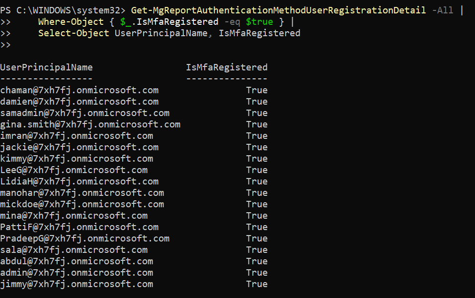 Where-Object { $_.IsMfaRegistered -eq $true } |
