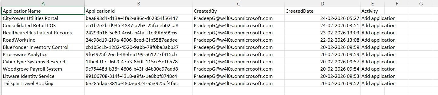 Tracking which applications are created by a specific user is critical for governance, auditing, and identifying potential misuse of app registrations. This script leverages audit logs to identify applications created by a specific user within a defined timeframe and exports the results to a CSV report.