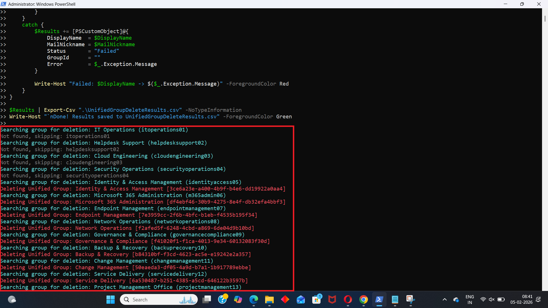 Deleting Microsoft 365 (Unified) Groups one-by-one in the Entra admin center can be slow—especially when you’re cleaning up unused project groups, expired teams, or test groups created during pilots. This article shows how to bulk delete Unified Groups using Microsoft Graph PowerShell by reading group details from a CSV file, validating the group type for safety, deleting only Unified Groups, and exporting a results report.