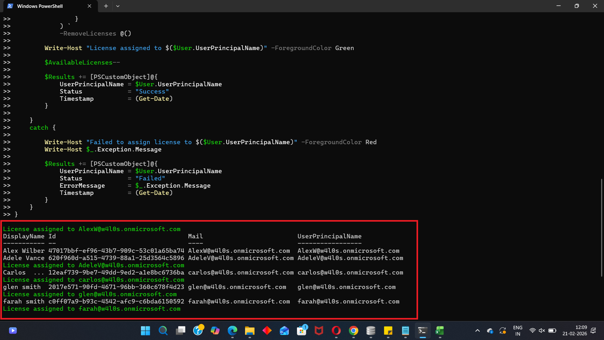 Write-Host "Failed to assign license to $($User.UserPrincipalName)" -ForegroundColor Red