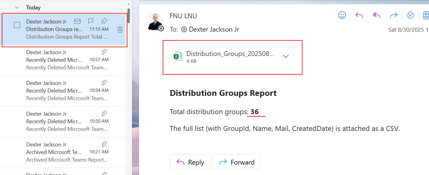 This Graph PowerShell script makes that task easier. It gathers all Distribution Groups, collects key details like GroupId, DisplayName, Mail, CreatedDate, and Description, exports them to a CSV file, and emails the report to the administrator.