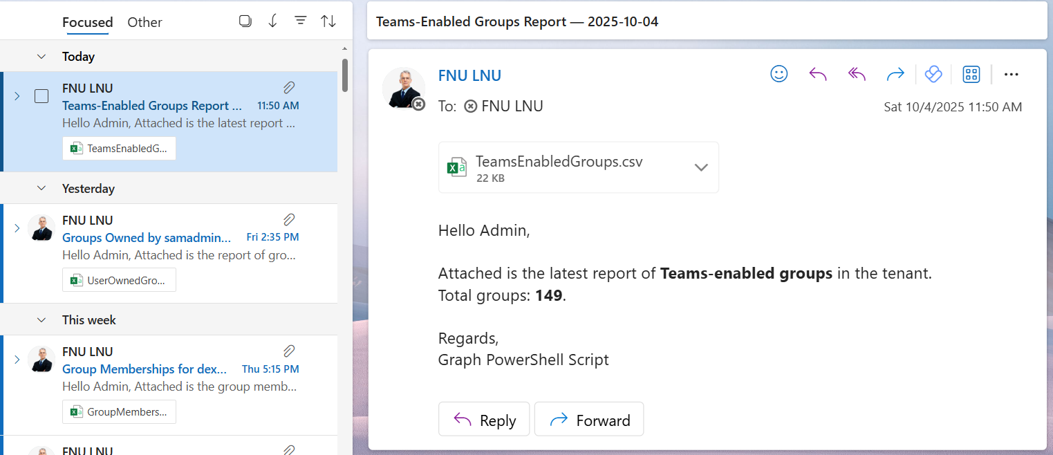 $Subject = "Teams-Enabled Groups Report β $(Get-Date -Format 'yyyy-MM-dd')"