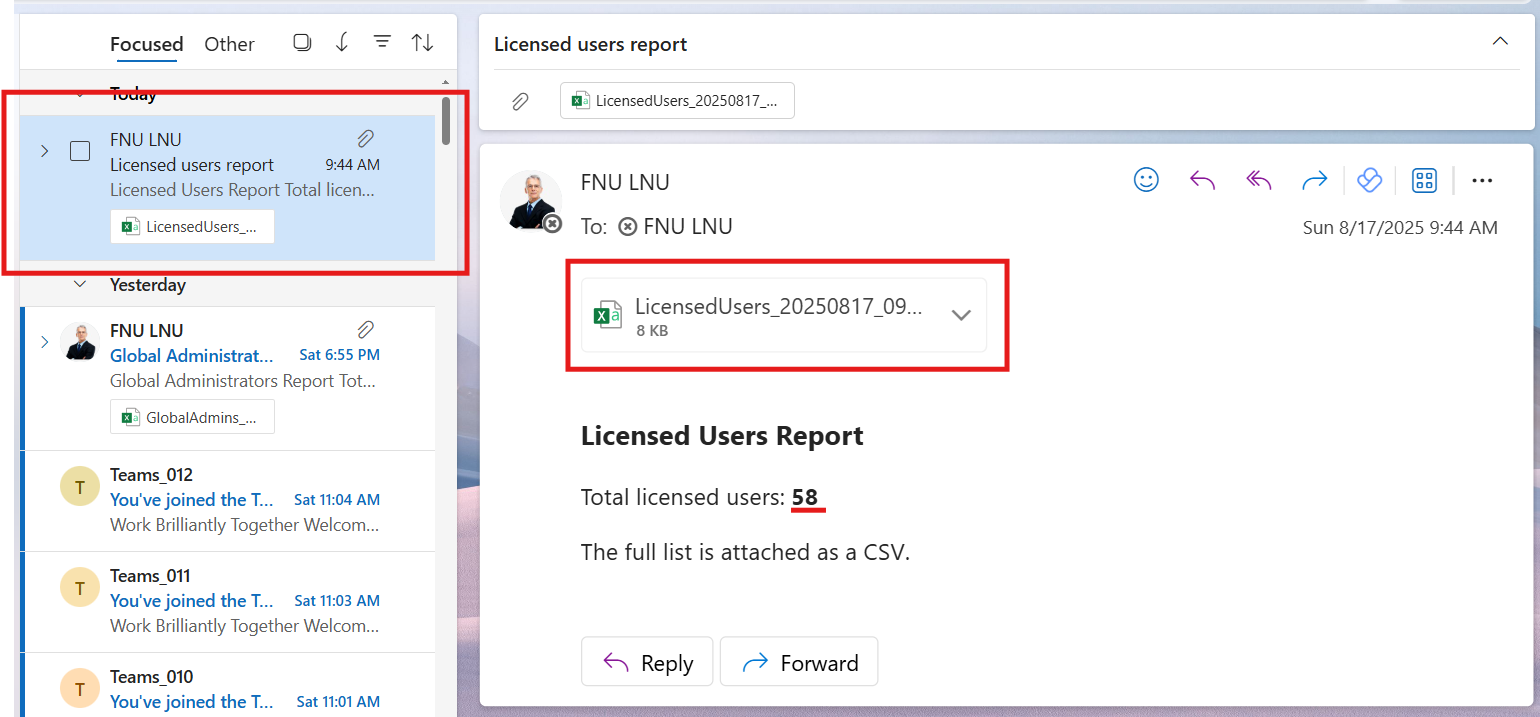 This lightweight script gives you a reliable, repeatable way to discover licensed users and deliver the results directly to an administrator’s inbox. It’s easy to schedule, simple to extend (e.g., add license names), and perfect for ongoing compliance and cost-control workflows.