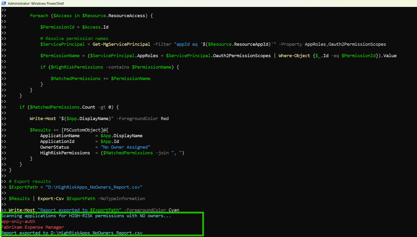 $ExportPath = "D:\HighRiskApps_NoOwners_Report.csv"