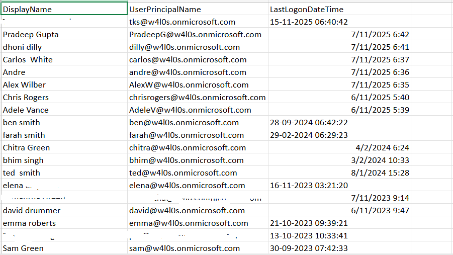 This script provides administrators with a reliable way to track the last login date of all users in the tenant, ensuring visibility into active usage patterns and potential dormant accounts. With automatic email delivery, admins can stay informed without manually generating the report, making this an efficient and governance-friendly solution for ongoing tenant monitoring.