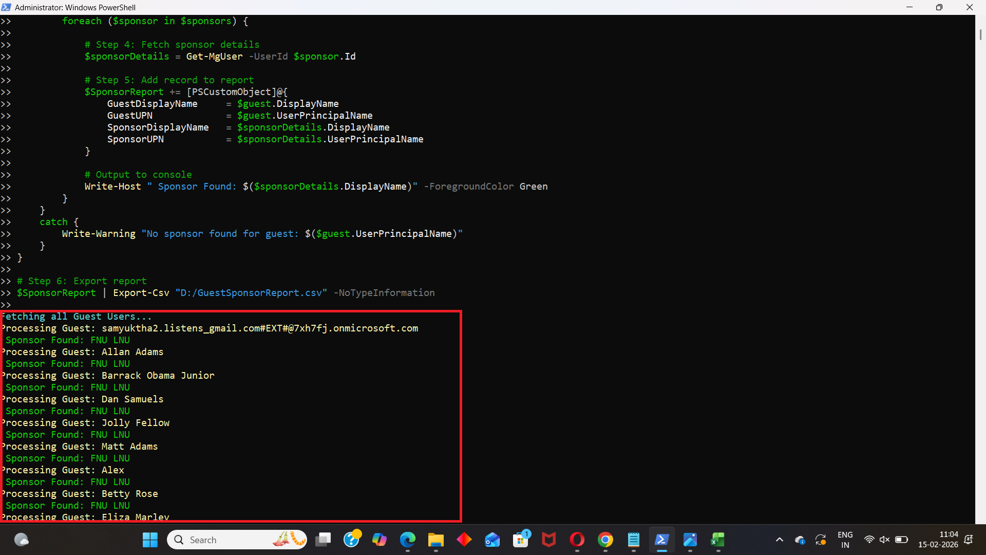 Write-Host "`nGuest Sponsor Report Exported Successfully!" -ForegroundColor Cyan