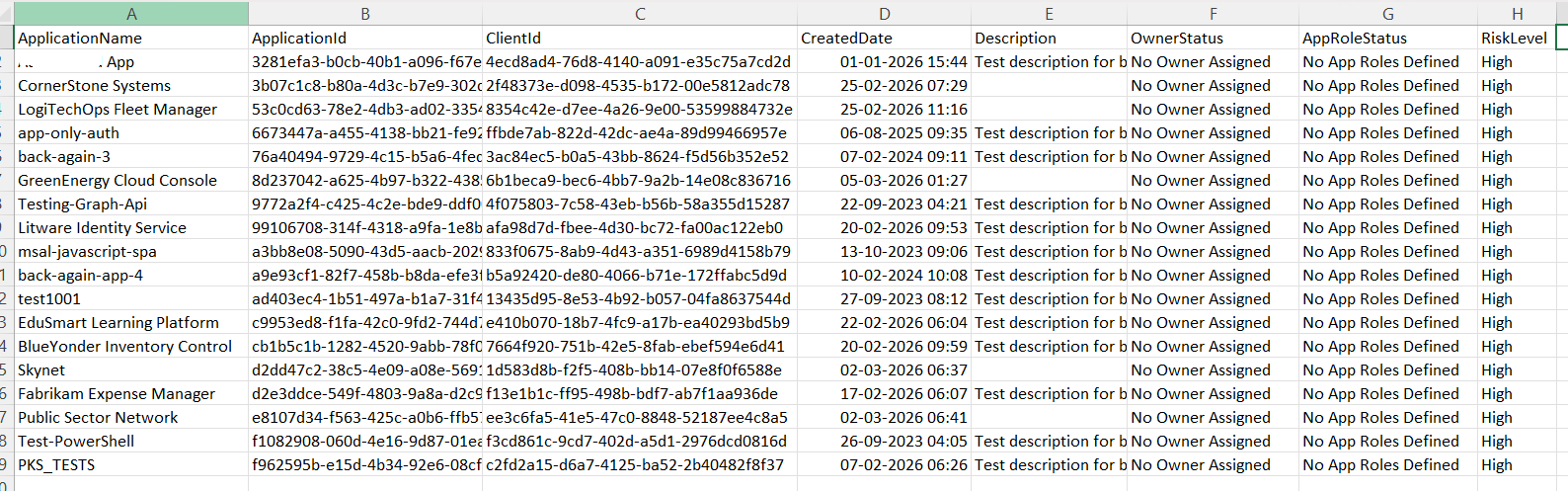 $Applications = Get-MgApplication -All -Property Id,DisplayName,AppId,CreatedDateTime,Description,AppRoles