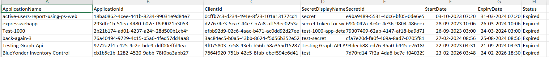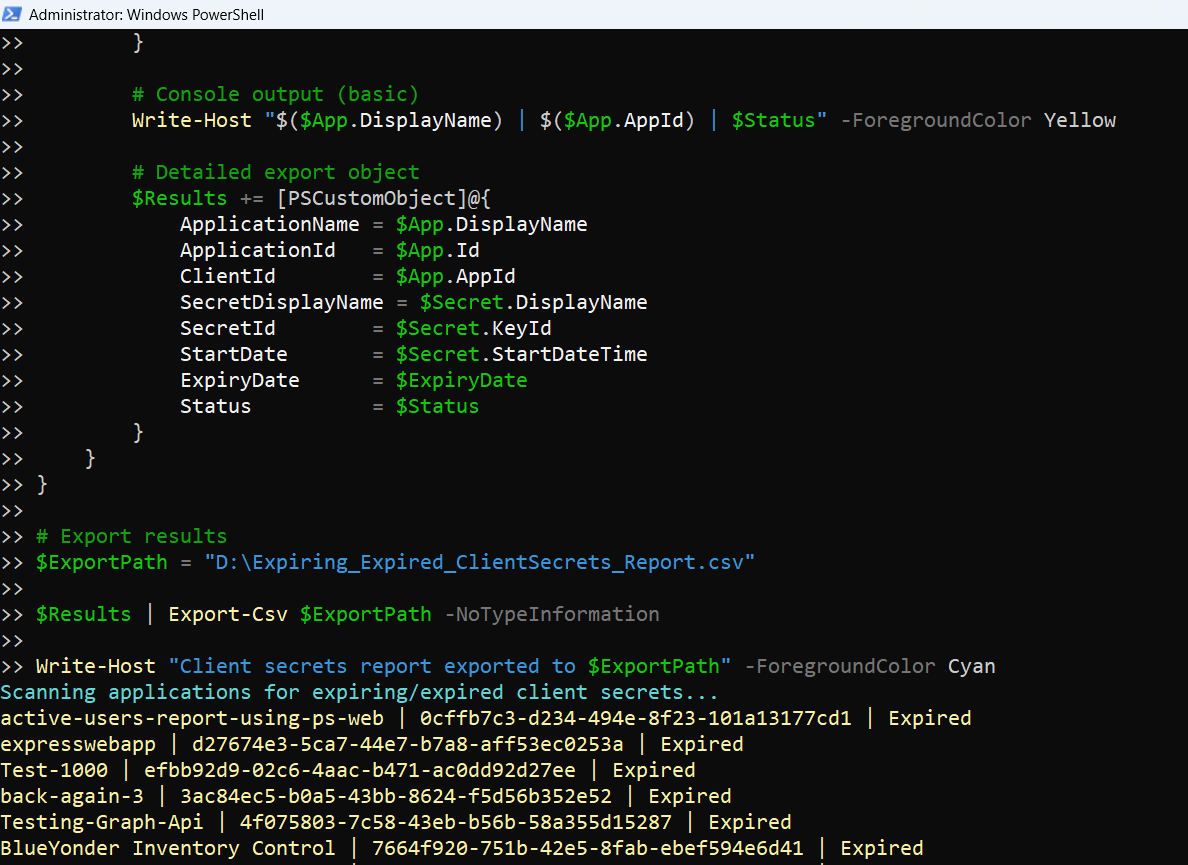 Write-Host "Client secrets report exported to $ExportPath" -ForegroundColor Cyan