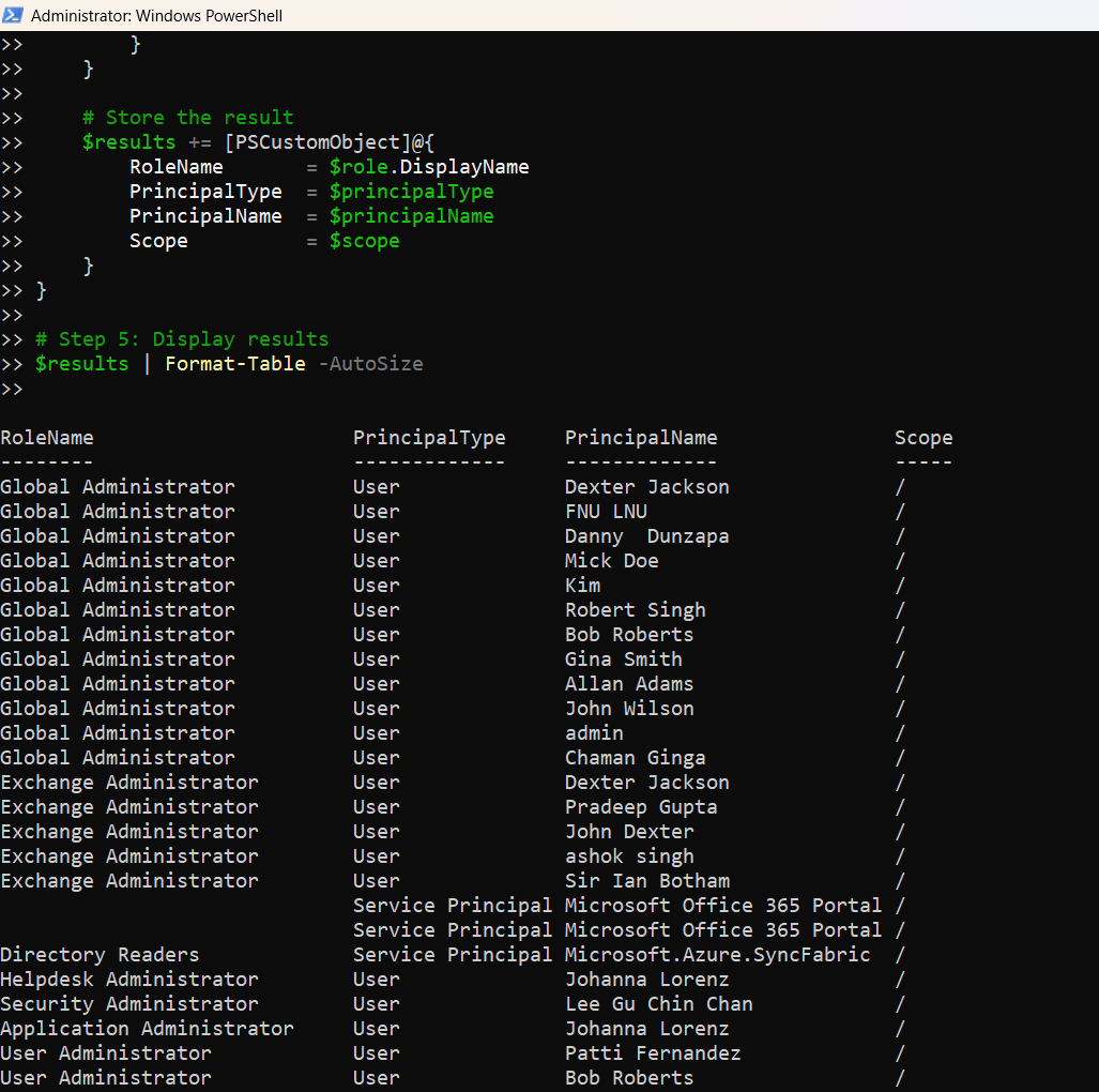 Understanding who holds privileged roles in your Microsoft 365 tenant is crucial for maintaining security and compliance. This script leverages Microsoft Graph PowerShell to map role names to their assigned users, groups, or service principals with full clarity and flexibility.