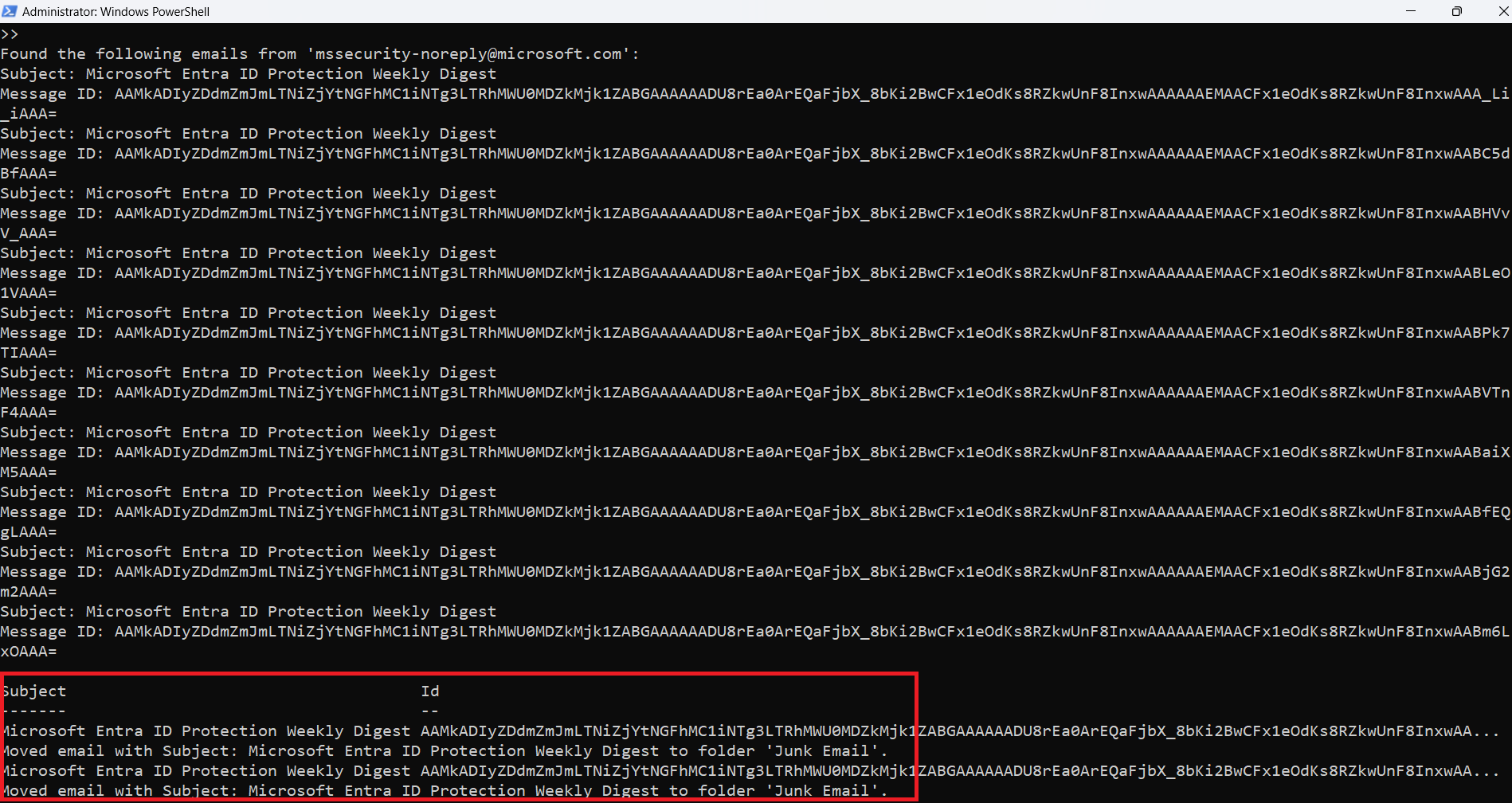 Write-Output "No emails found from '$SenderEmail' for $UserUPN."