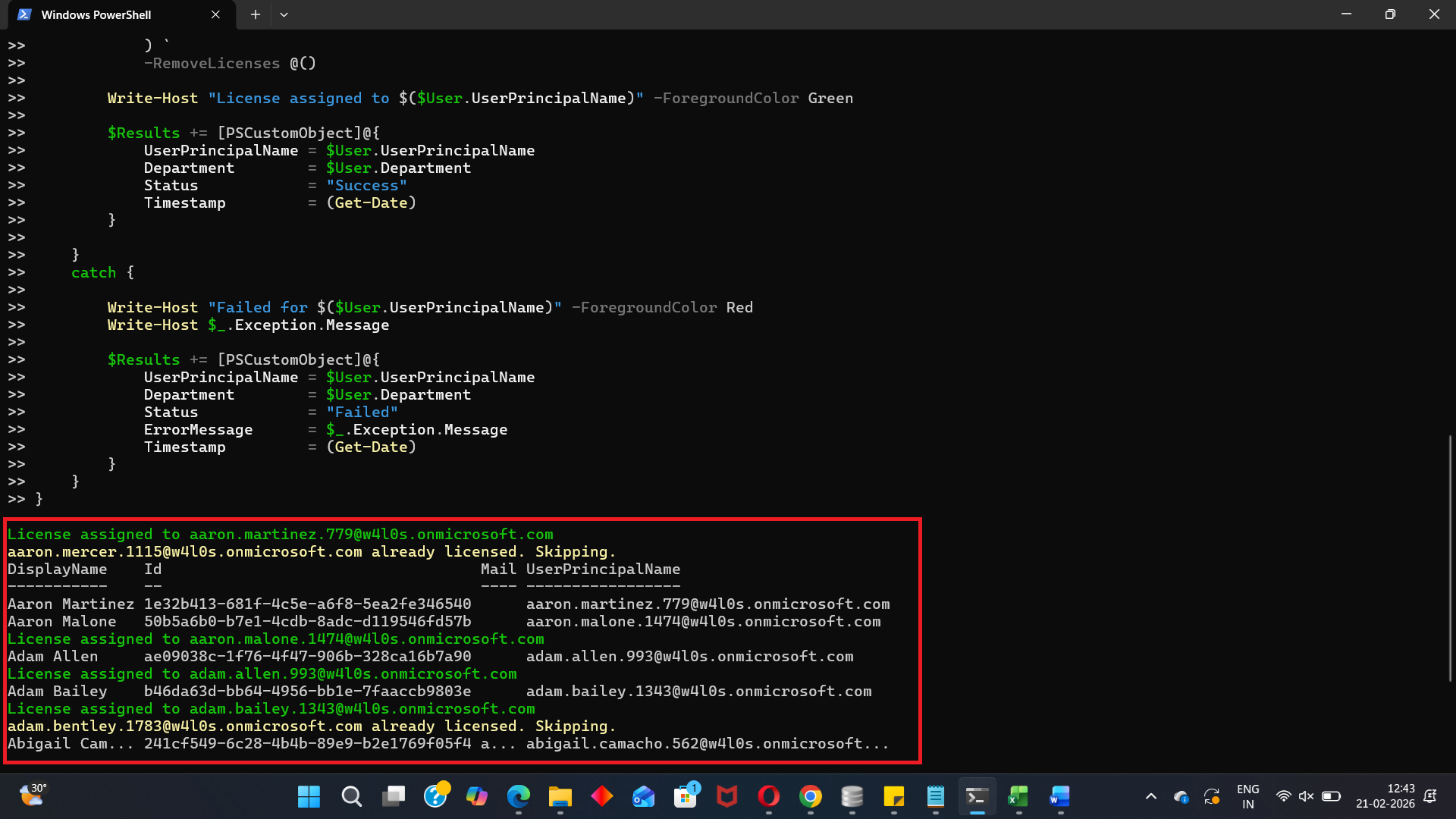 Write-Host "Failed for $($User.UserPrincipalName)" -ForegroundColor Red