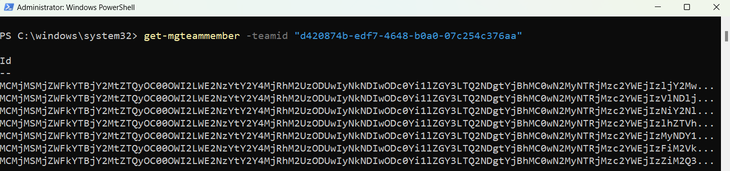 cmdlet retrieves the members of a specified team, but it only provides their Team Member IDs by default. To fetch additional details such as User ID, Display Name, User Principal Name (UPN), and Email, you need to pair it with the Get-MgUser