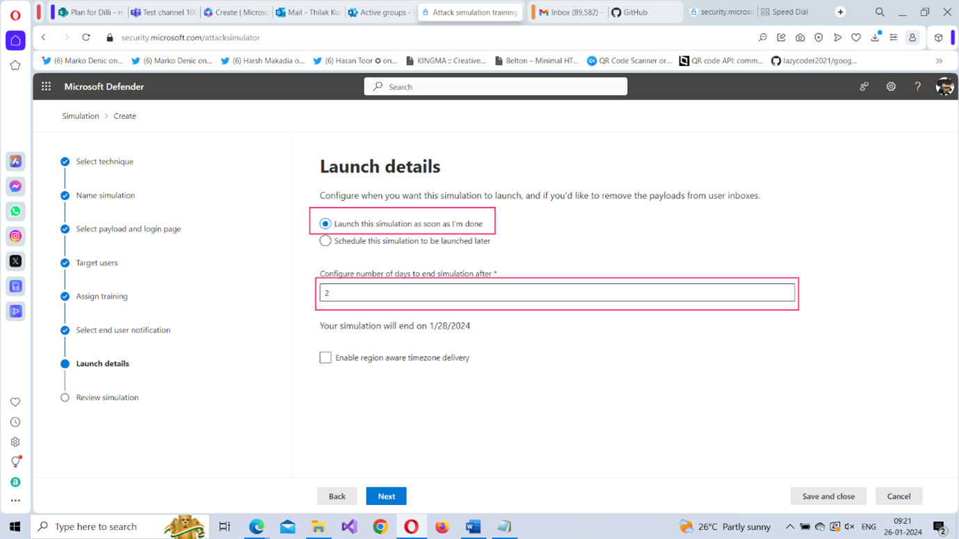 You can also decide how long the simulation attack is going to last by entering the number of days in the Configure number of days to end simulation after box. [A month or 30 days is an ideal number].