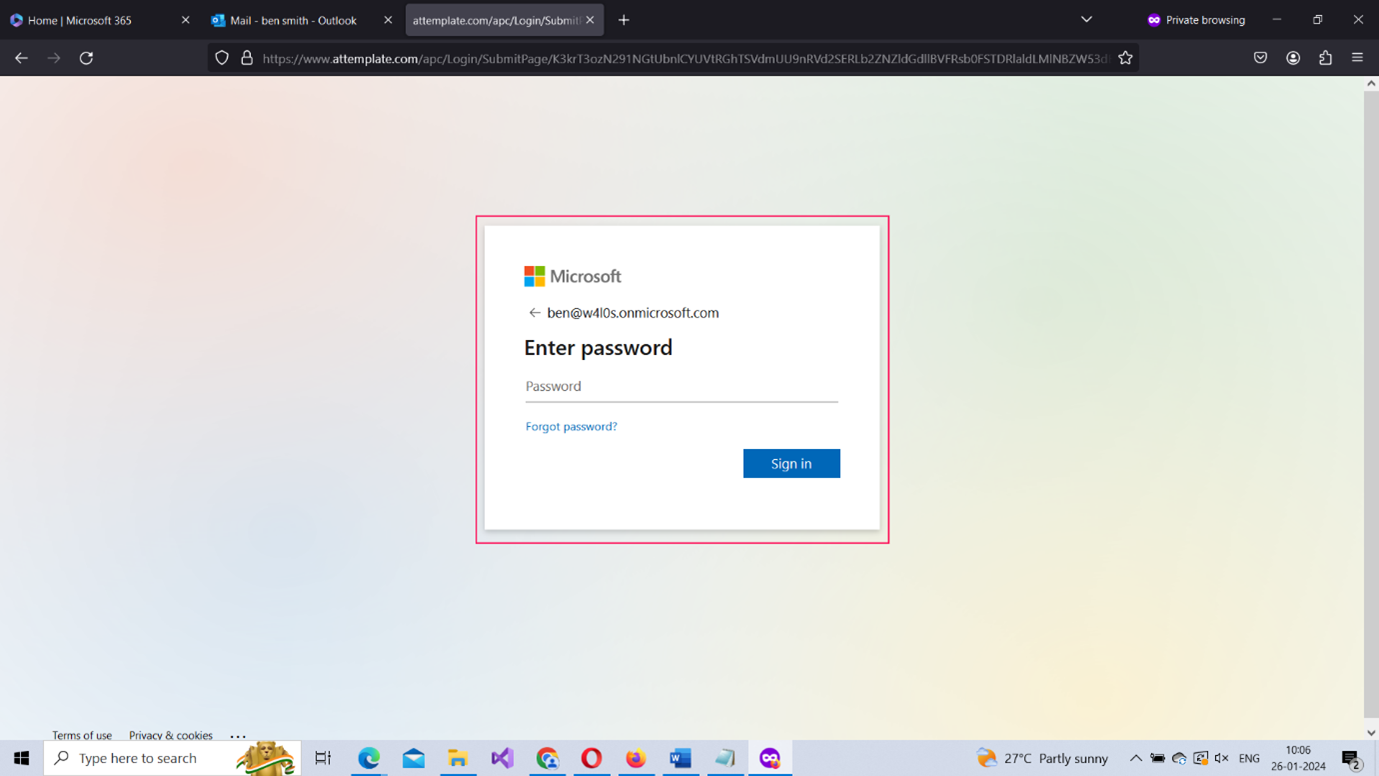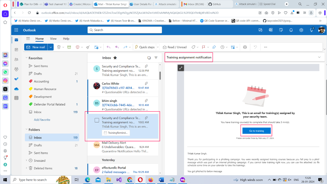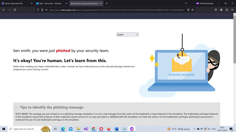 Since the simulation attack was launched for all the users in the tenant, you can take the test to see what happens if you fall prey to the phishing mail.