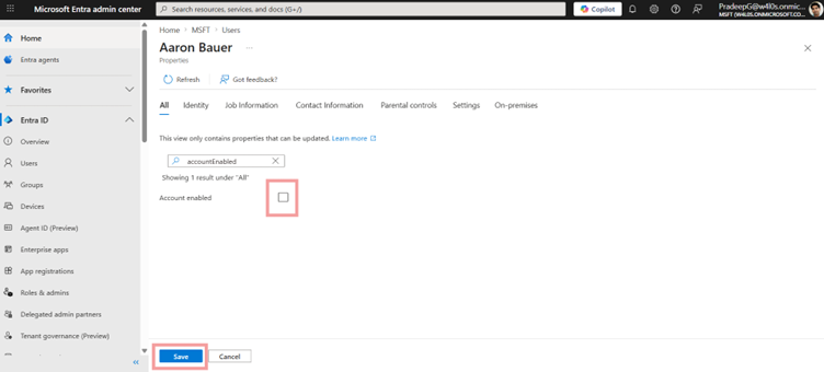 | accountEnabled | Controls whether the user can sign in (True = enabled, False = disabled) |