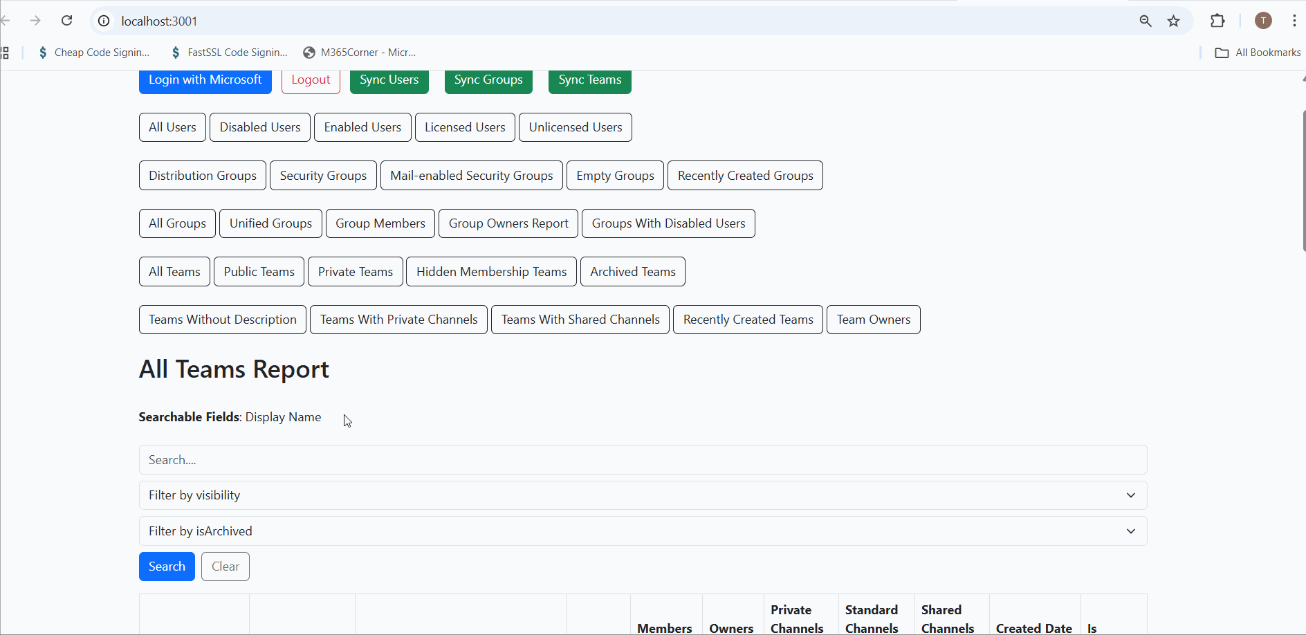 The M365Corner Free Reporting Tool (also known as the Free M365 Community Dashboard) gives you the Archived Teams Report at the click of a button — no scripts, no Admin Center navigation, no complexity.