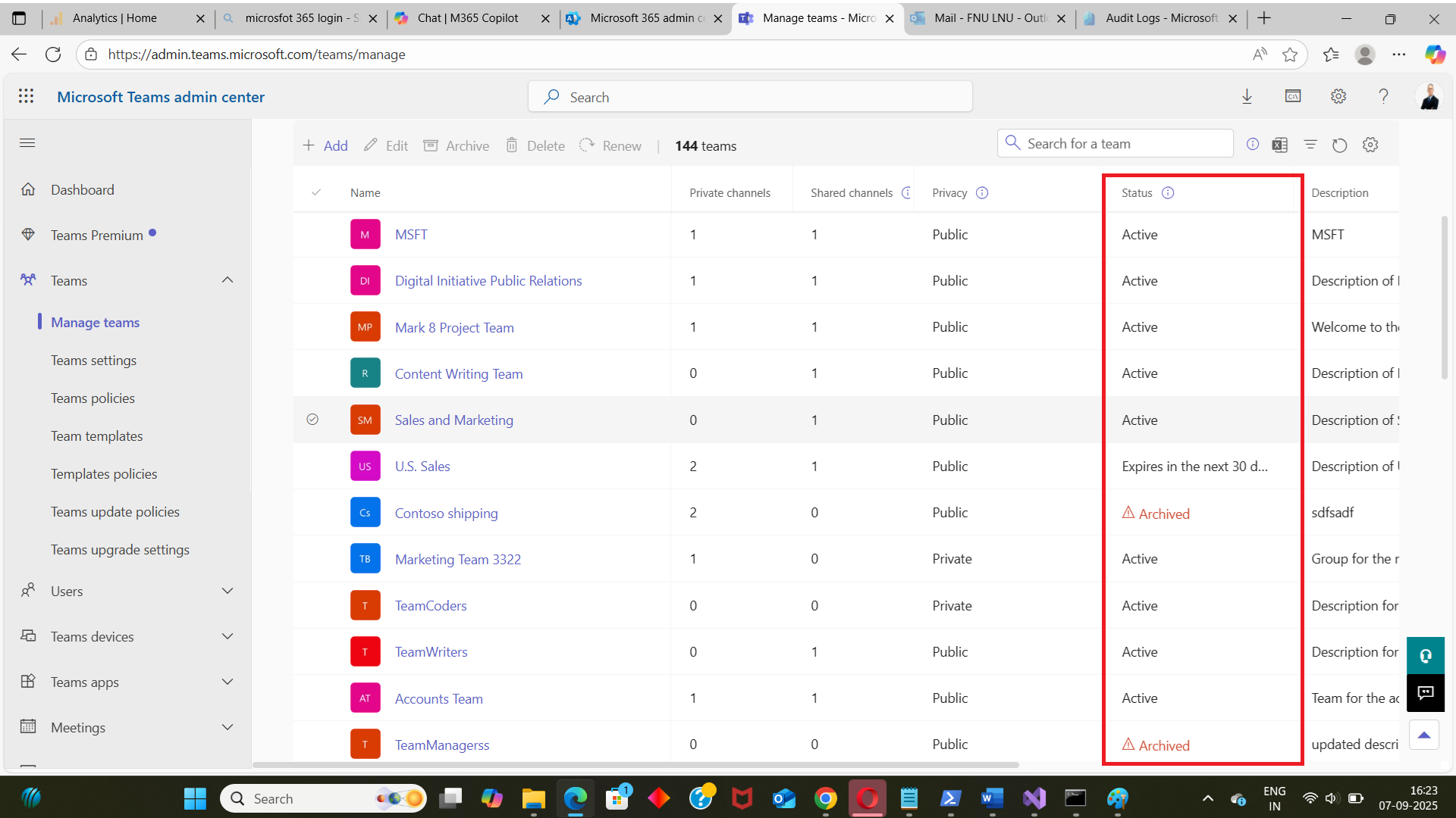 Archived Teams often indicate completed work, making them ideal candidates for cleanup, retention review, or migration planning.