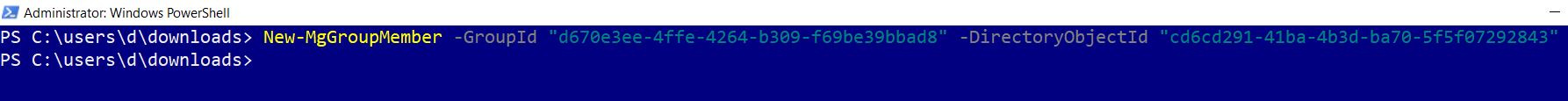 Note: You can get the required user id by running the Get-MgUser cmdlet. You can get the required group id by running the Get-MgGroup cmdlet.
