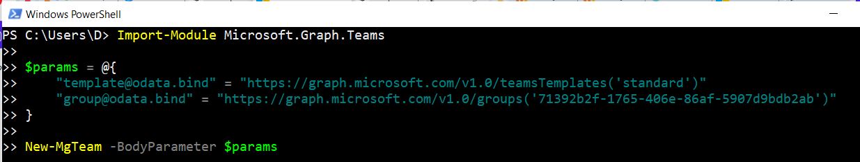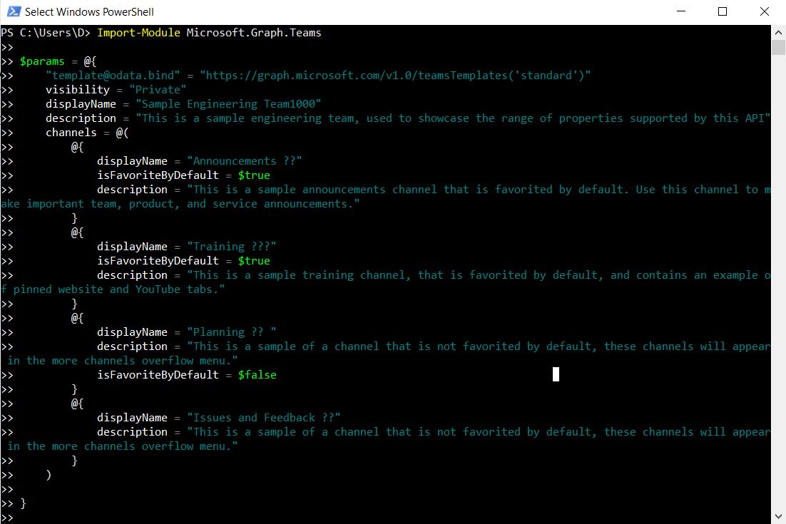 - Import-Module Microsoft.Graph.Teams