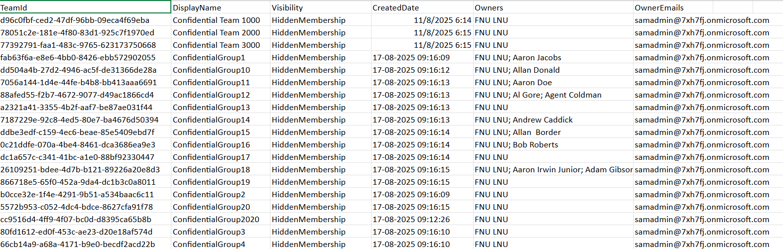 | Empty CSV | No hidden Teams found | Confirm whether your tenant contains any Teams with HiddenMembership. |