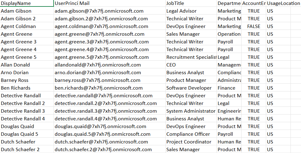 | Empty CSV File | No users found with the specified usage location. | Verify the location code (e.g., US, IN, GB) and ensure users have the UsageLocation property set. |