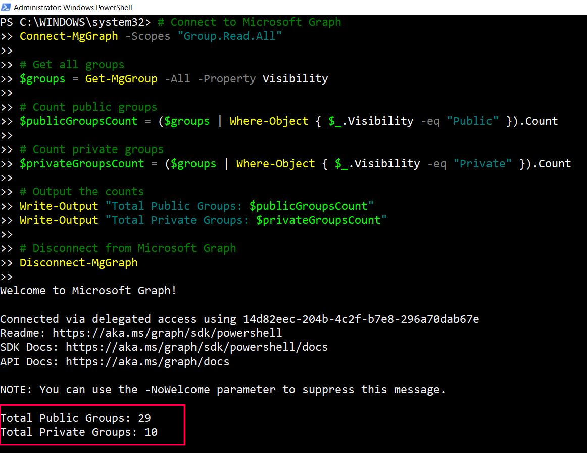 Write-Output "Total Private Groups: $privateGroupsCount"