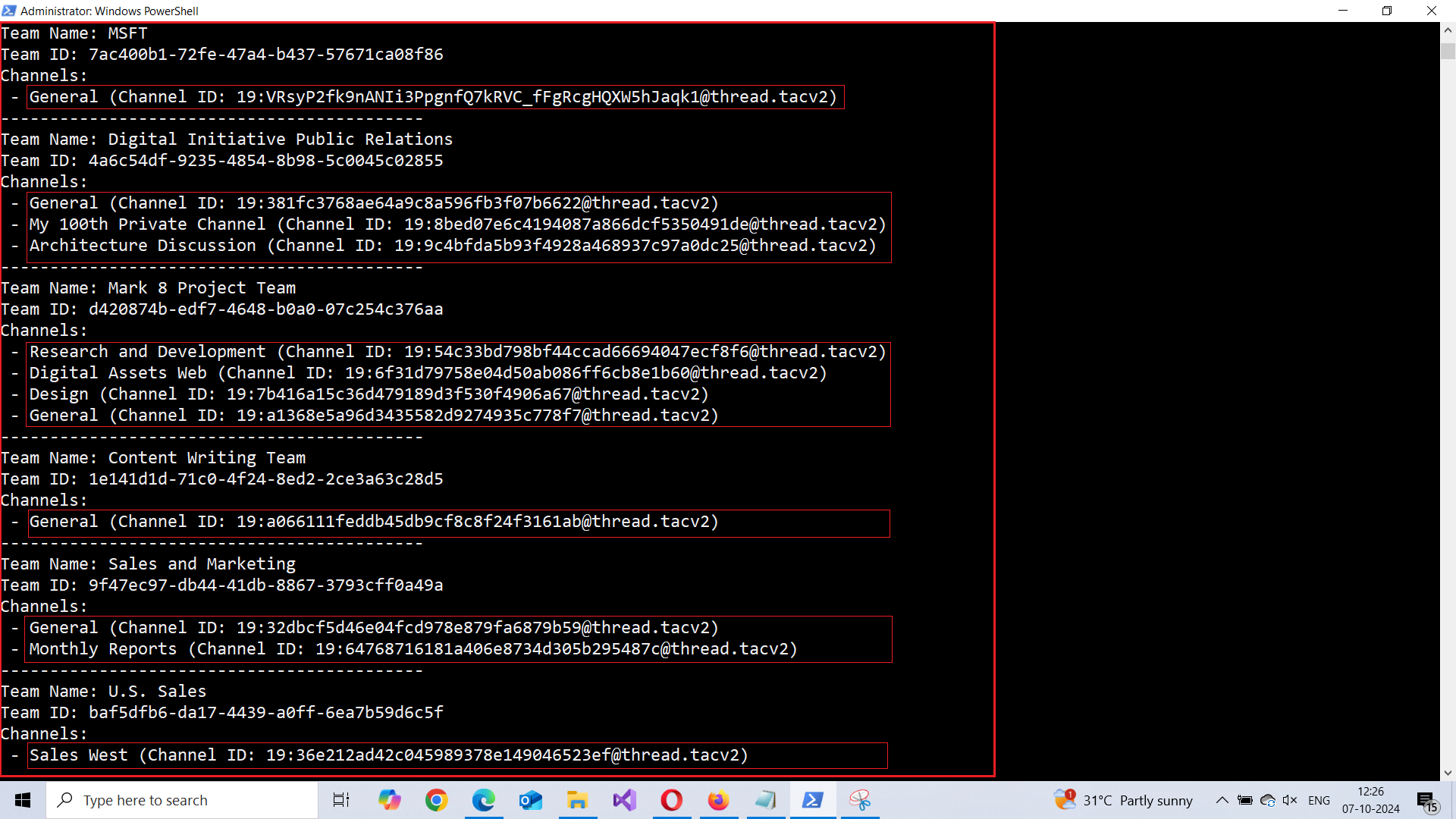 Write-Output " - $($channel.DisplayName) (Channel ID: $($channel.Id))"