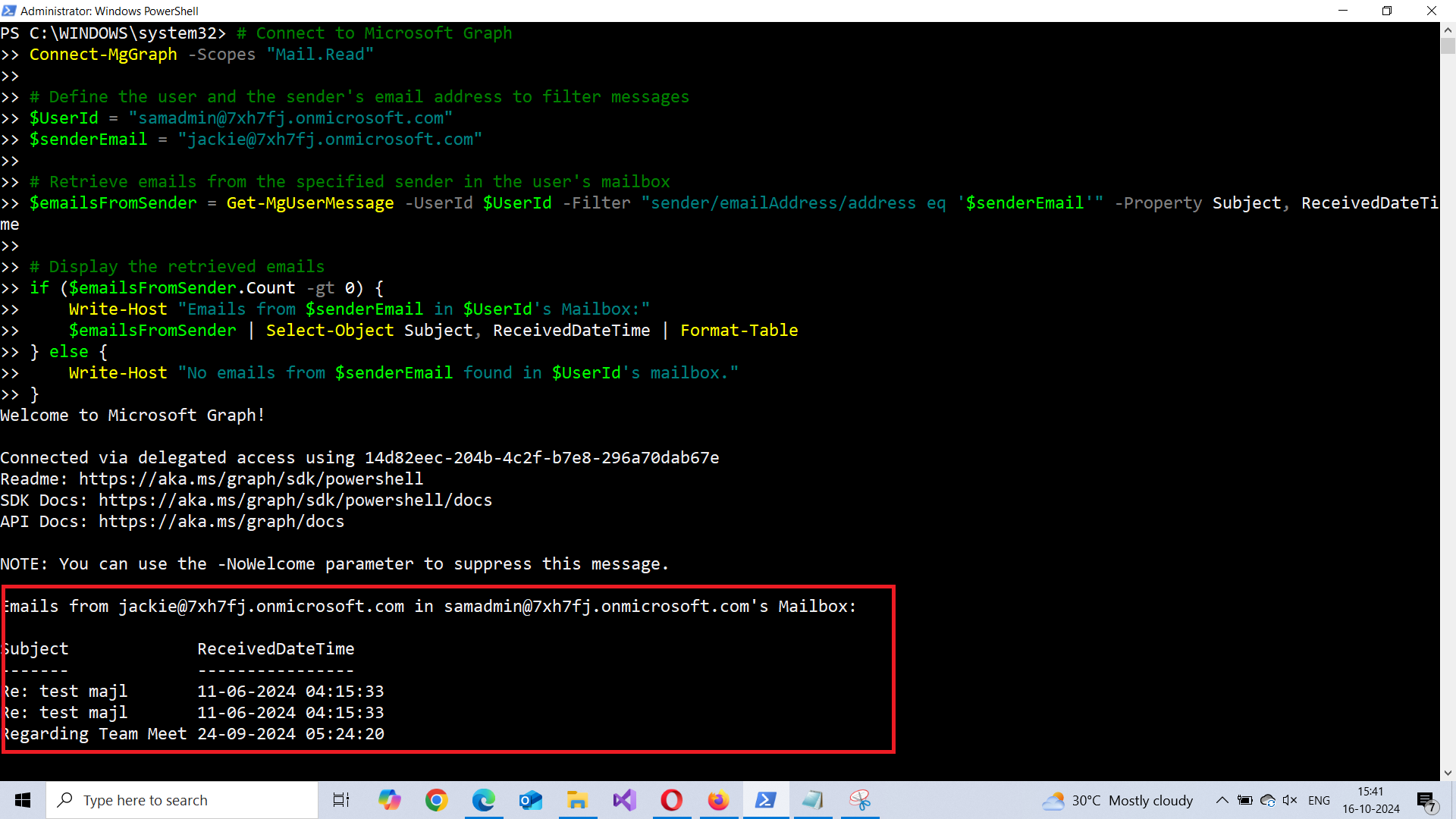 Retrieving emails from a specific sender using Microsoft Graph PowerShell is an effective way to monitor key communications within an organization. By filtering emails based on the sender’s address, administrators can quickly identify important messages and ensure they are addressed.