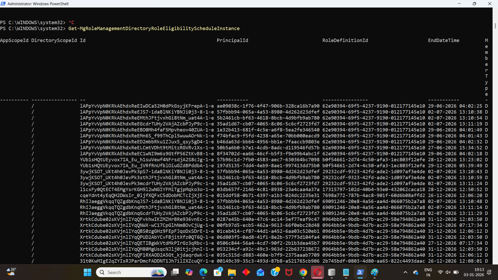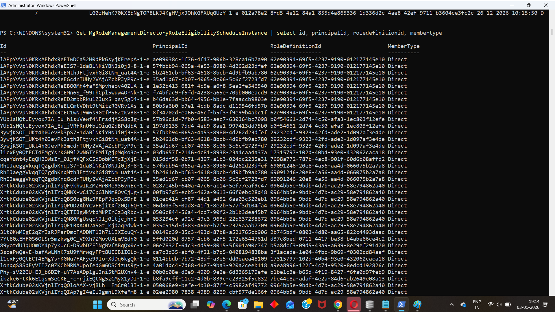 Get-MgRoleManagementDirectoryRoleEligibilityScheduleInstance | Select Id, PrincipalId, RoleDefinitionId, MemberType