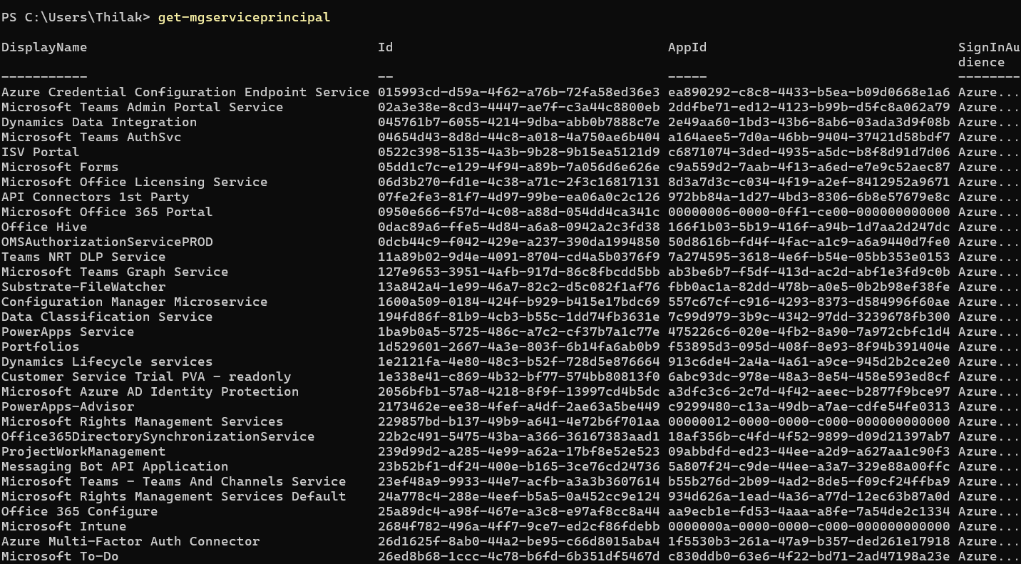 PublisherNameAppId to Match Against Enterprise ApplicationsAppId from sign-in logs with the AppId of service principals.The Get-MgServicePrincipal cmdlet is essential for managing service principals in Microsoft 365. By mastering its usage, you can efficiently audit, filter, and retrieve service principal details for your tenant. Always ensure proper permissions and use -ConsistencyLevel eventual for advanced filtering and searching.