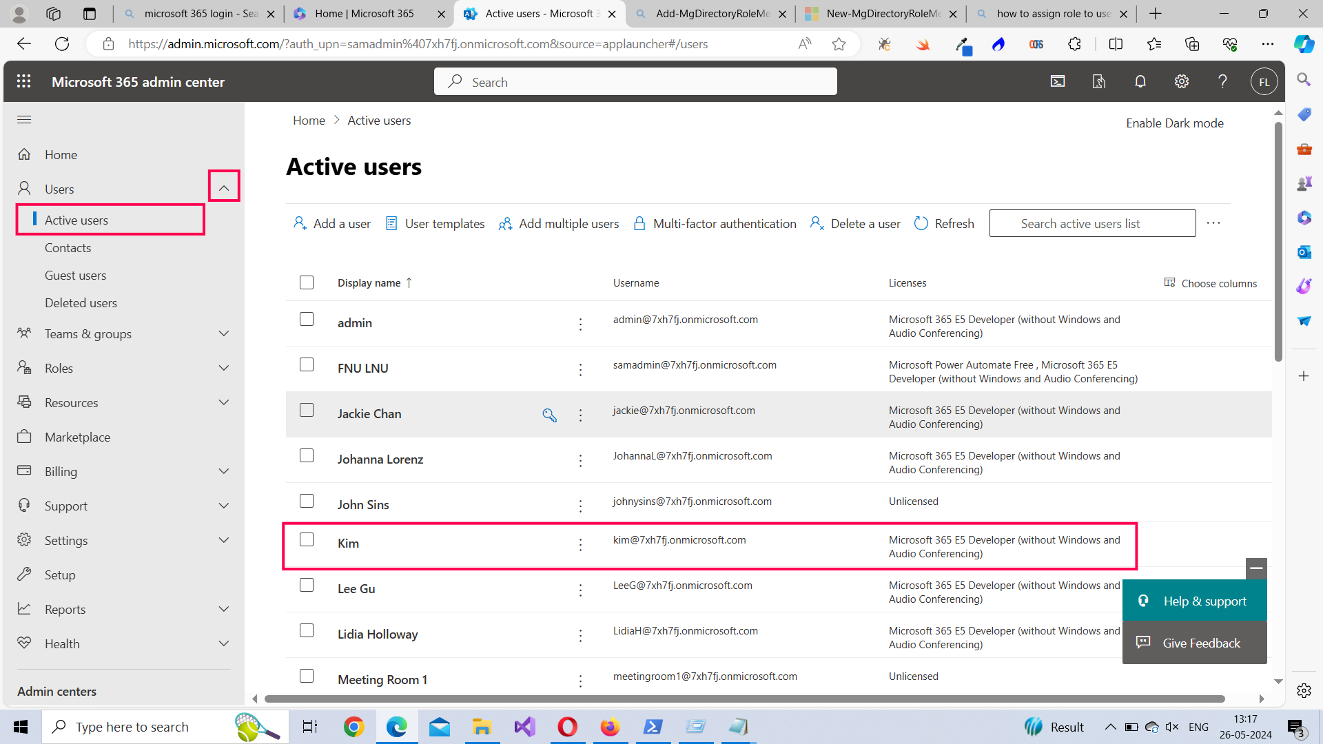- Verify the User Creation: You can verify that the user has been created and the license assigned by logging into your Microsoft 365 admin center and checking under Users >> Active Users.
