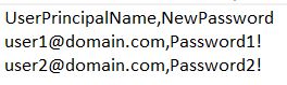 Note: The CSV file should contain the UserPrincipalName and NewPassword headers and corresponding values.