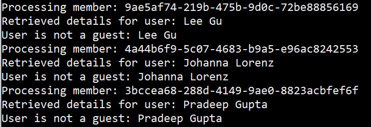 Write-Host "User is not a guest: $($user.DisplayName)"