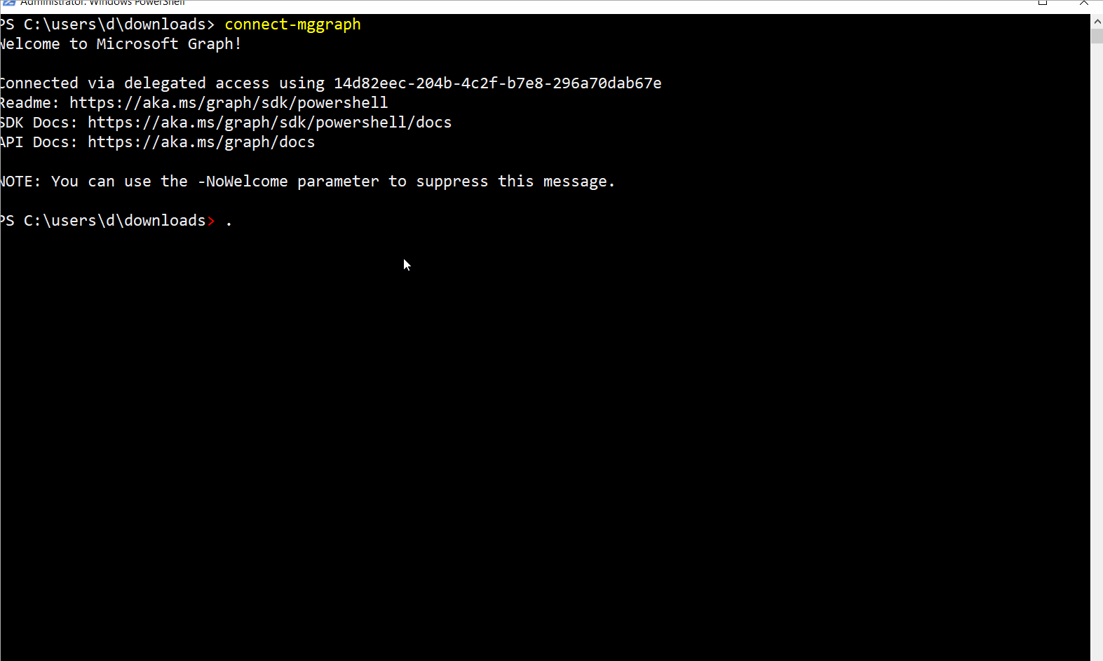 | Module Import Failure | The Microsoft.Graph module is not installed or imported. | Run Install-Module Microsoft.Graph to install the required module. |