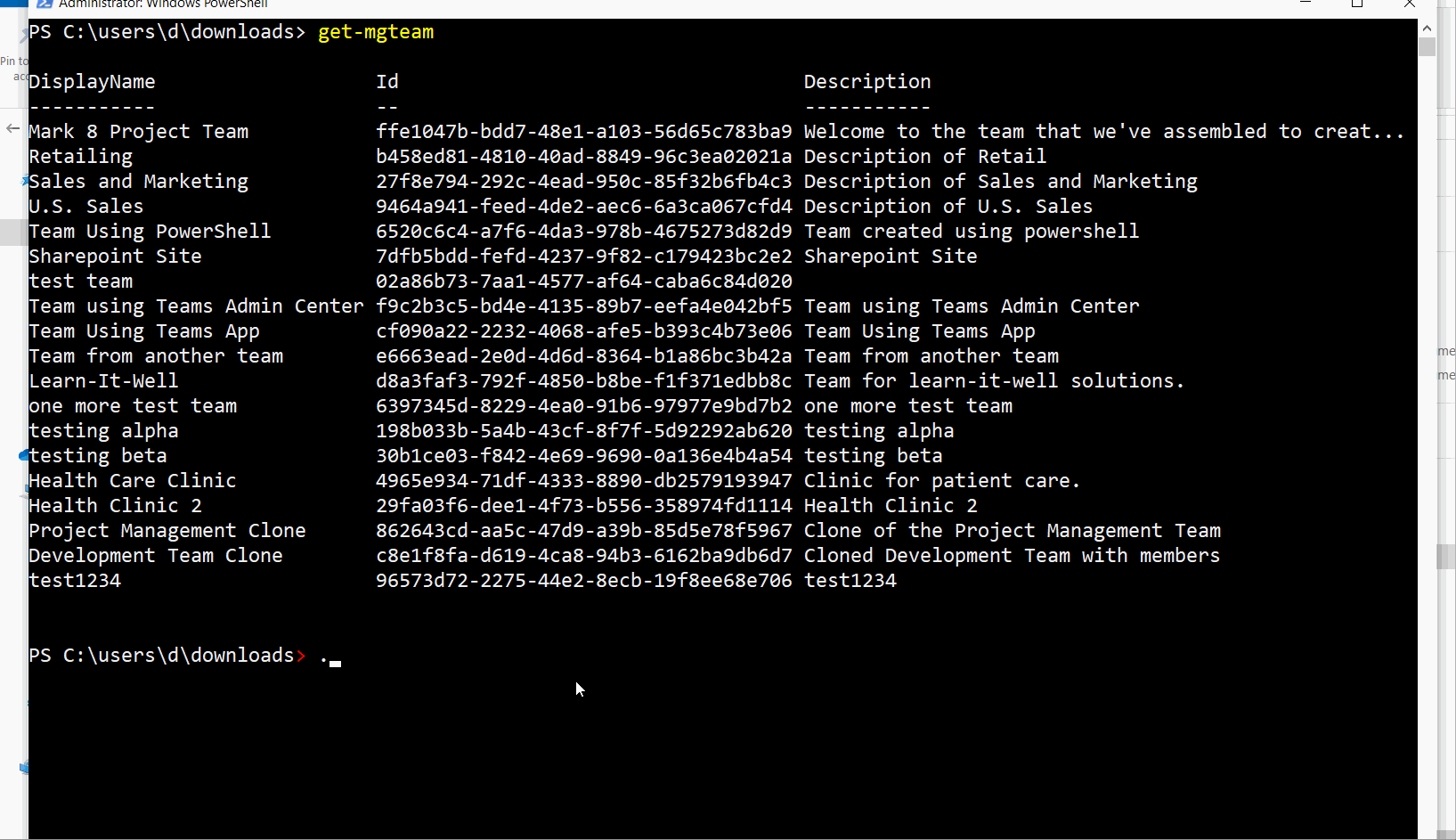 Write-Host "Channel Name: $($_.DisplayName) - ID: $($_.Id)"