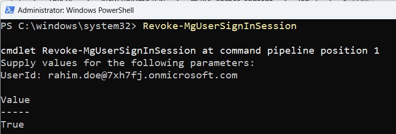 Read-Host -AsSecureString to avoid displaying input in plaintext.Get-MgUserSignInActivity to identify users with suspicious login activity before revoking sessions.User.ReadWrite.All permission, to execute this cmdlet.No, it only invalidates the user's refresh tokens. Existing access tokens remain valid until they expire, so the user may not be signed out immediately.