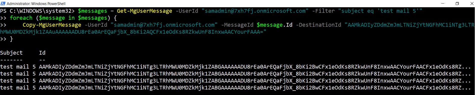 Copy-MgUserMessage -UserId "user@domain.com" -MessageId $id -DestinationId "AQMkAG..."