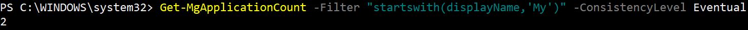 Get-MgApplicationCount -Filter "startswith(displayName,'My')" -ConsistencyLevel Eventual