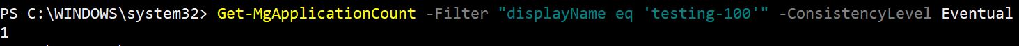 Get-MgApplicationCount -Filter "displayName eq 'testing-100'" -ConsistencyLevel Eventual