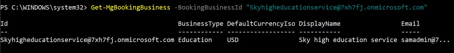 Get-MgBookingBusiness -BookingBusinessId "<BusinessId>"