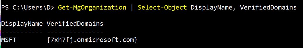 Get-MgOrganization | Select-Object DisplayName, VerifiedDomains