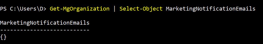 Get-MgOrganization | Select-Object MarketingNotificationEmails