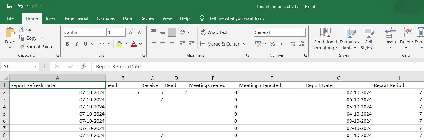 Get-MgReportEmailActivityCount -Period D7 -OutFile "C:\Reports\EmailActivityReport.csv"